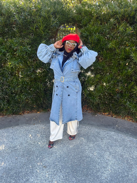 Introducing the "Just Puffed Right" Denim Midi-Trench Coat from Soulish By LeLe—where refined tailoring meets...