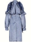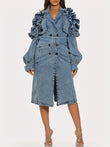 Soulish By LeLe- "Just Puffed Right" Denim Midi-Trench Coat